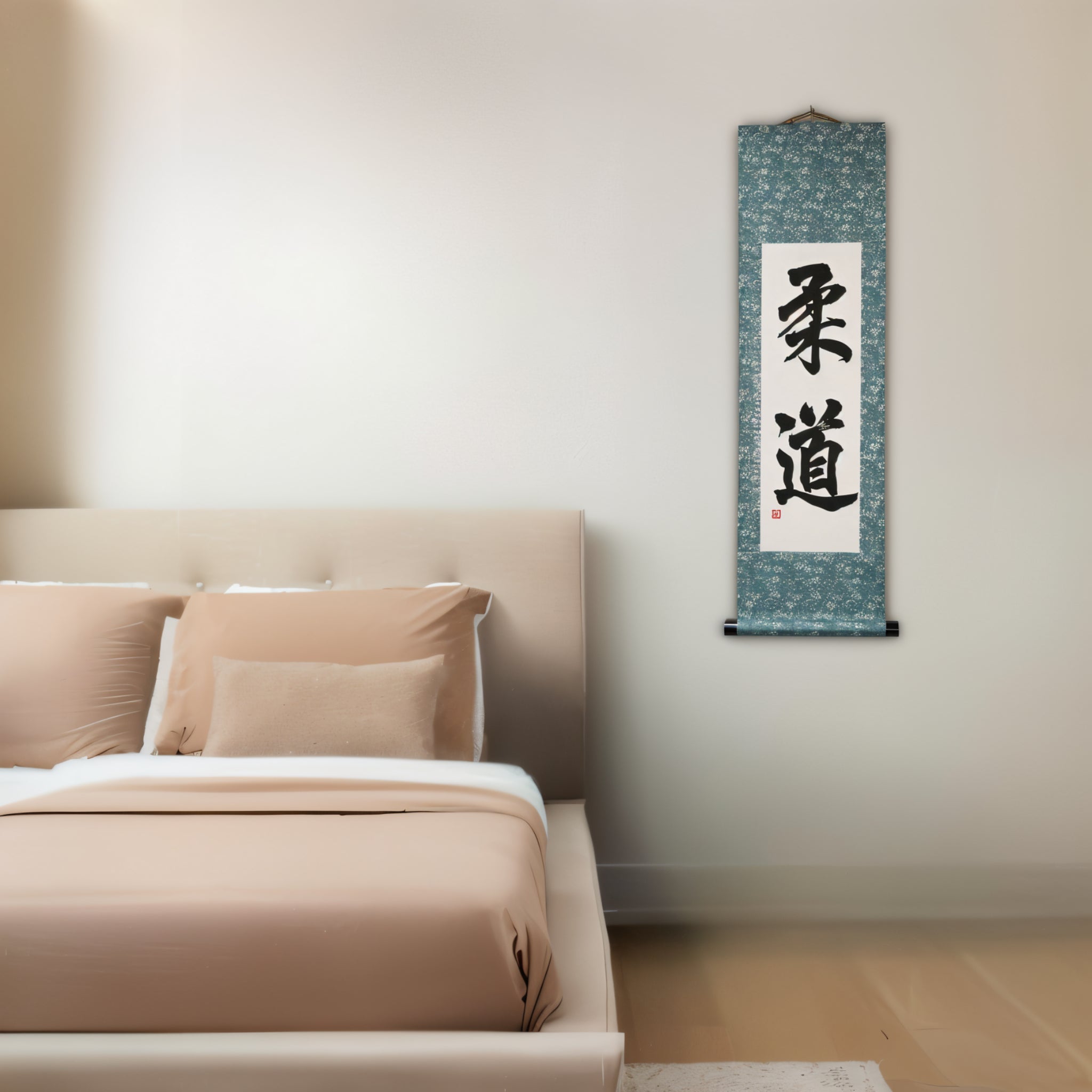 I practice Judo competitively and this scroll keeps me grounded. I put it in my room, and just seeing it before or after training helps me reset and refocus. The design is calm and powerful, and the teal color blends beautifully with my space. I hope to visit a dojo in Japan one day. This scroll means a lot to me.
