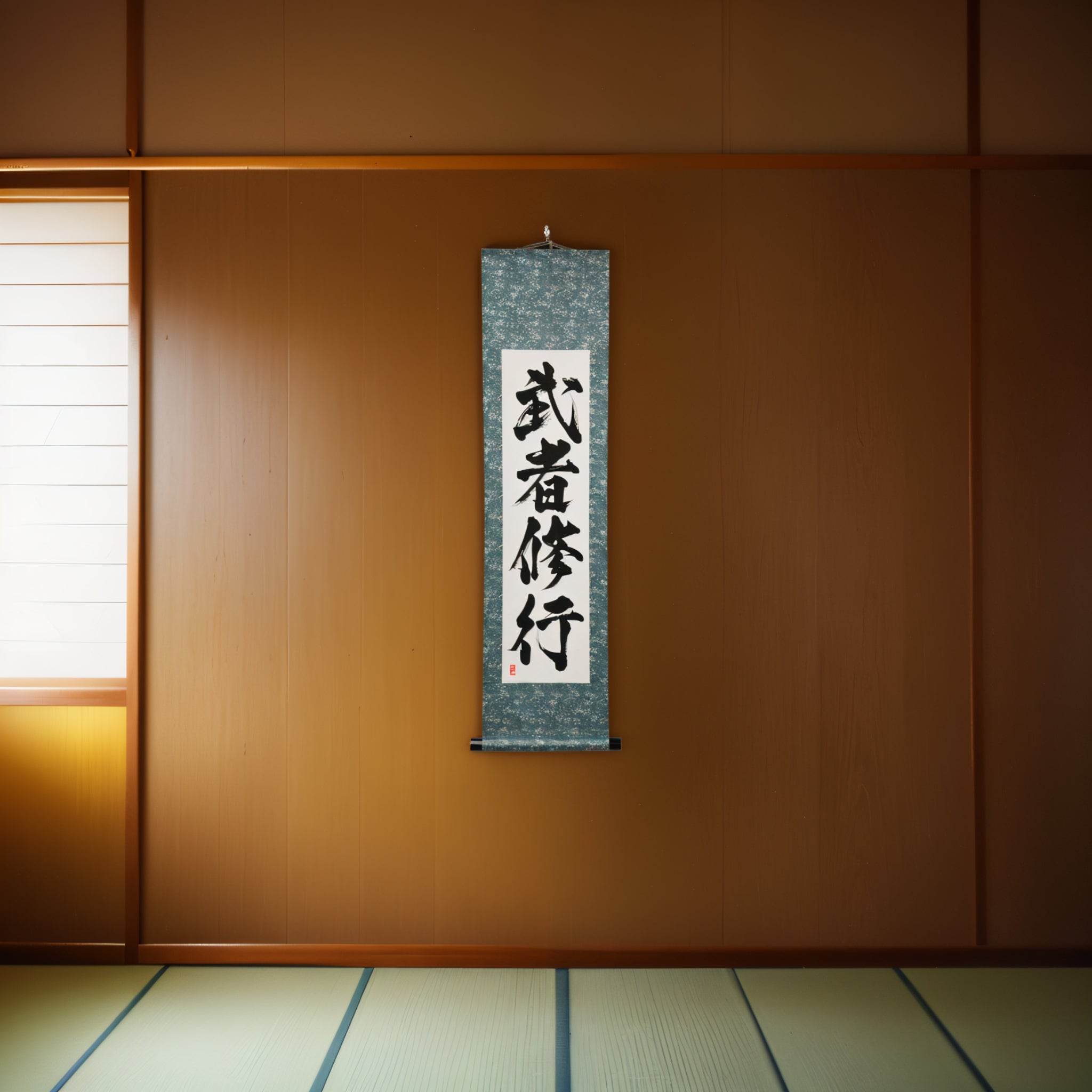 Este pergaminho de caligrafia japonesa incorpora a essência de 武者修行 (Musha Shugyo) — a jornada do Samurai de autodisciplina, crescimento e maestria. Enraizado profundamente na tradição Samurai, representa um compromisso vitalício com um treinamento rigoroso e a busca pela perfeição tanto na habilidade quanto no espírito.